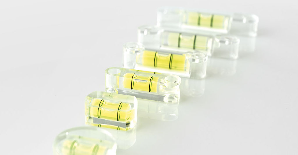 Spirit level elements are plastic air level elements used for one-dimensional alignment. They have a drilled out barrel-shape interior and basic sensitivity of approx. 40’ – 50’. These are featured in spirit levels used in construction, for example.