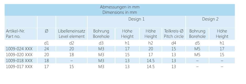 Ø 15 mm verbaut ist. Das Modell 1009-026 kann somit in verschiedenen Empfindlichkeiten gefertigt werden (siehe Bereich »Libelleneinsätze«).