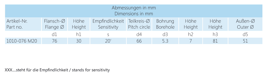 XXX....steht für die Empfindlichkeit / stands for sensitivity
