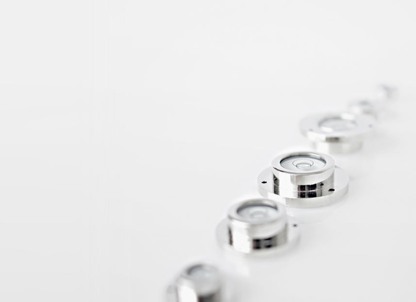 Mittig angeordnet sind eine oder mehrere Ringmarkierungen. Standardmäßig werden unsere Dosenlibellen auf eine Referenzfläche justiert. Unser Portfolio bietet aber auch justierbare Dosenlibellen, die über Gewindelöcher justiert werden können.